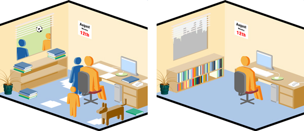 Illustrations for an animation depicting good and bad working environments.